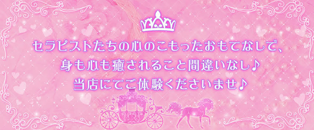 完全個室で厳選の可愛いセラピストがくつろぎと癒しを提供します!エステ上級者多数在籍当店自慢のセラピスト達によるオイルマッサージで癒しを体験してみませんか☆お客様に身も心もゆだねて頂けるような愛されるセラピストとの出会いをお約束致します。どうぞ、ご安心してご利用くださいませ!